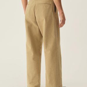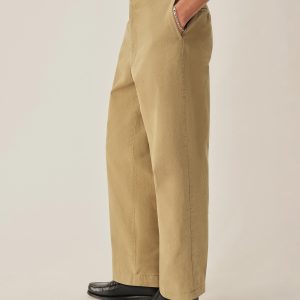 Inspired by 1960s military-issued chinos, an authentic period silhouette with a high rise, full top block, and a full leg. Cut from sulfur-dyed Japanese twill and constructed with busted seaming at the back rise, inseams, and outseams, along with tunnel belt loops and single-welt back pockets. Finished with corozo buttons, a Talon 42 zip, and a zip fly Stonewashed for a lived-in look and feel.