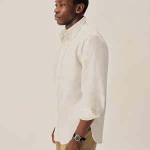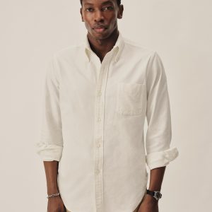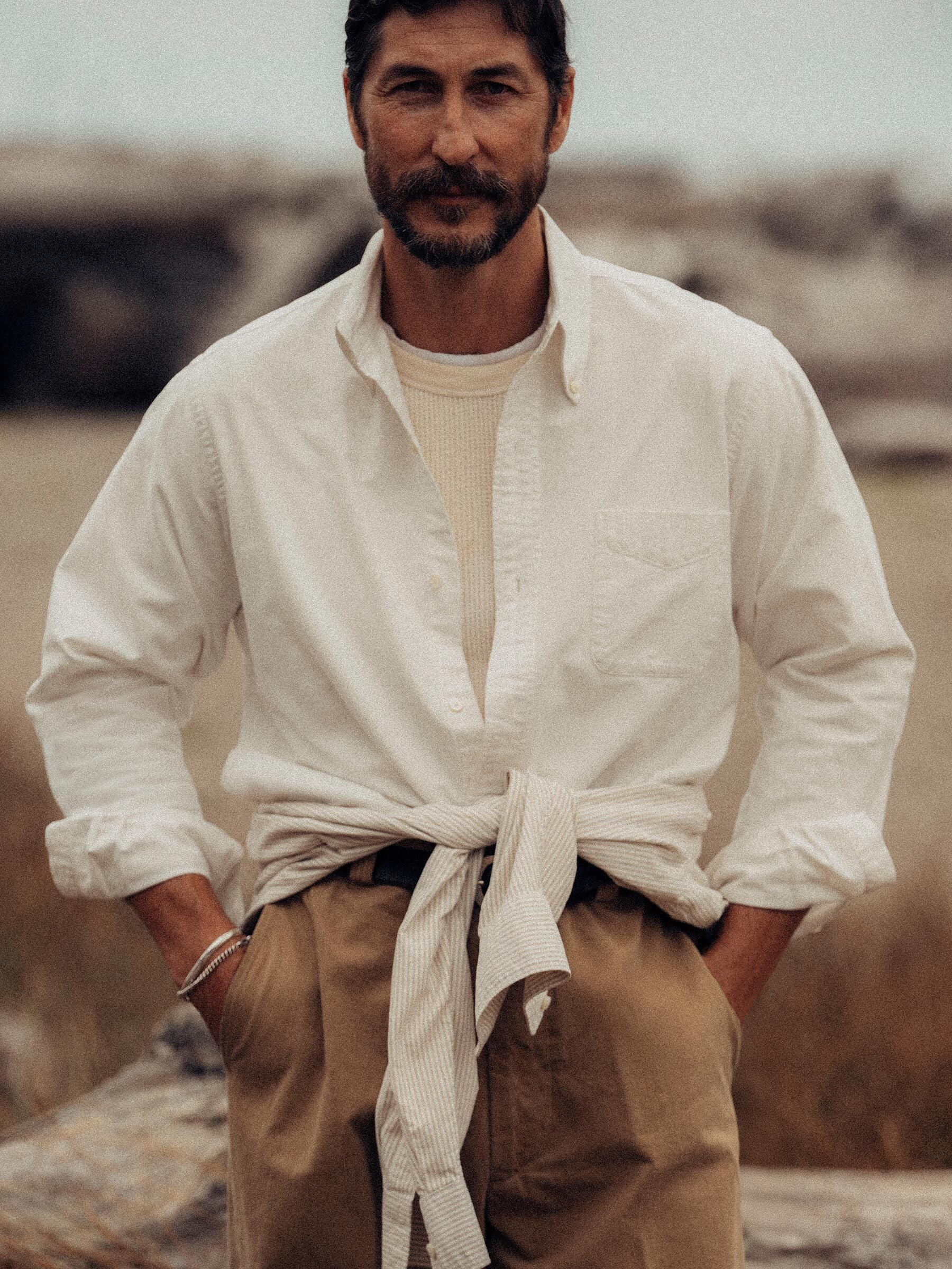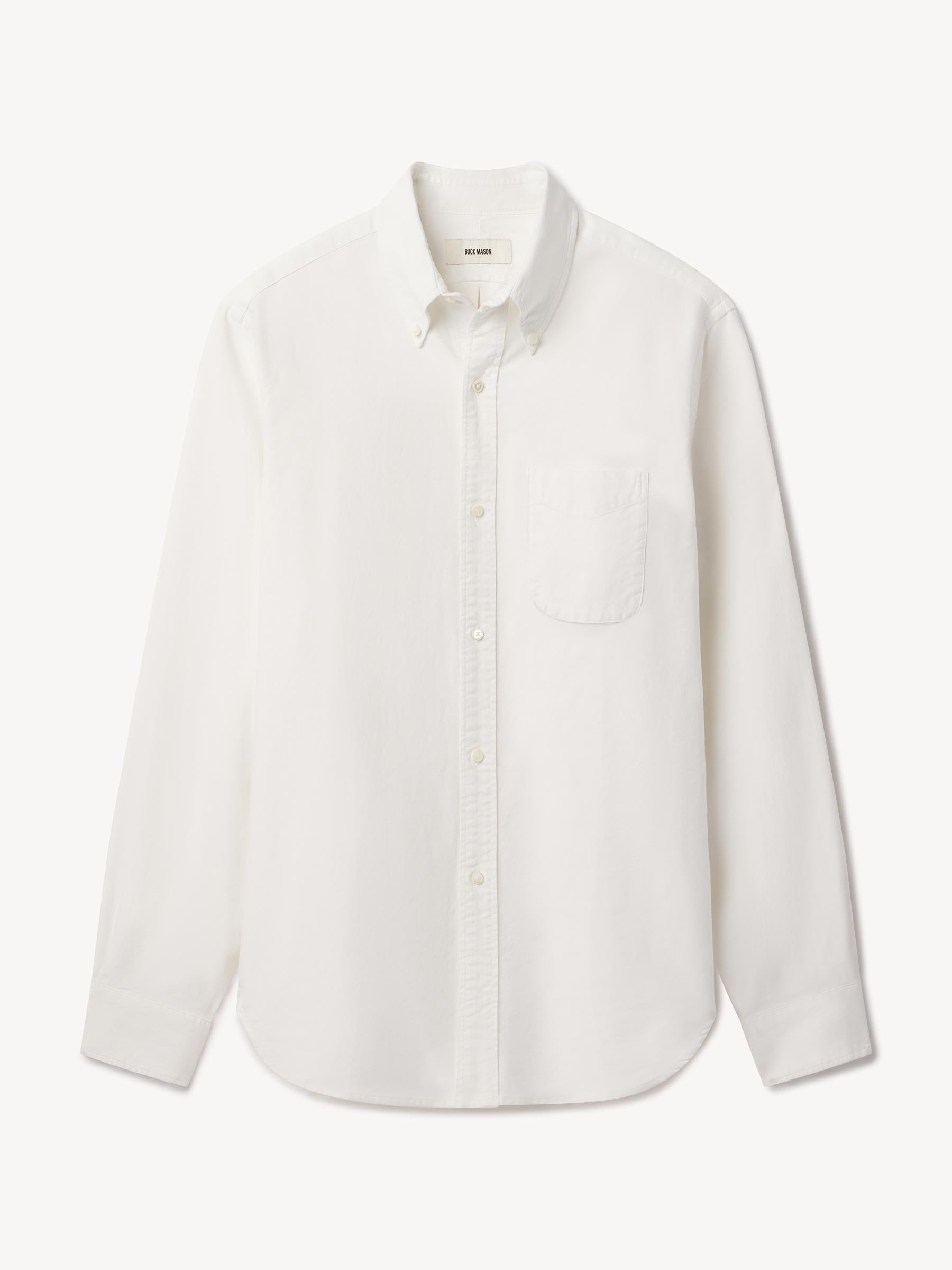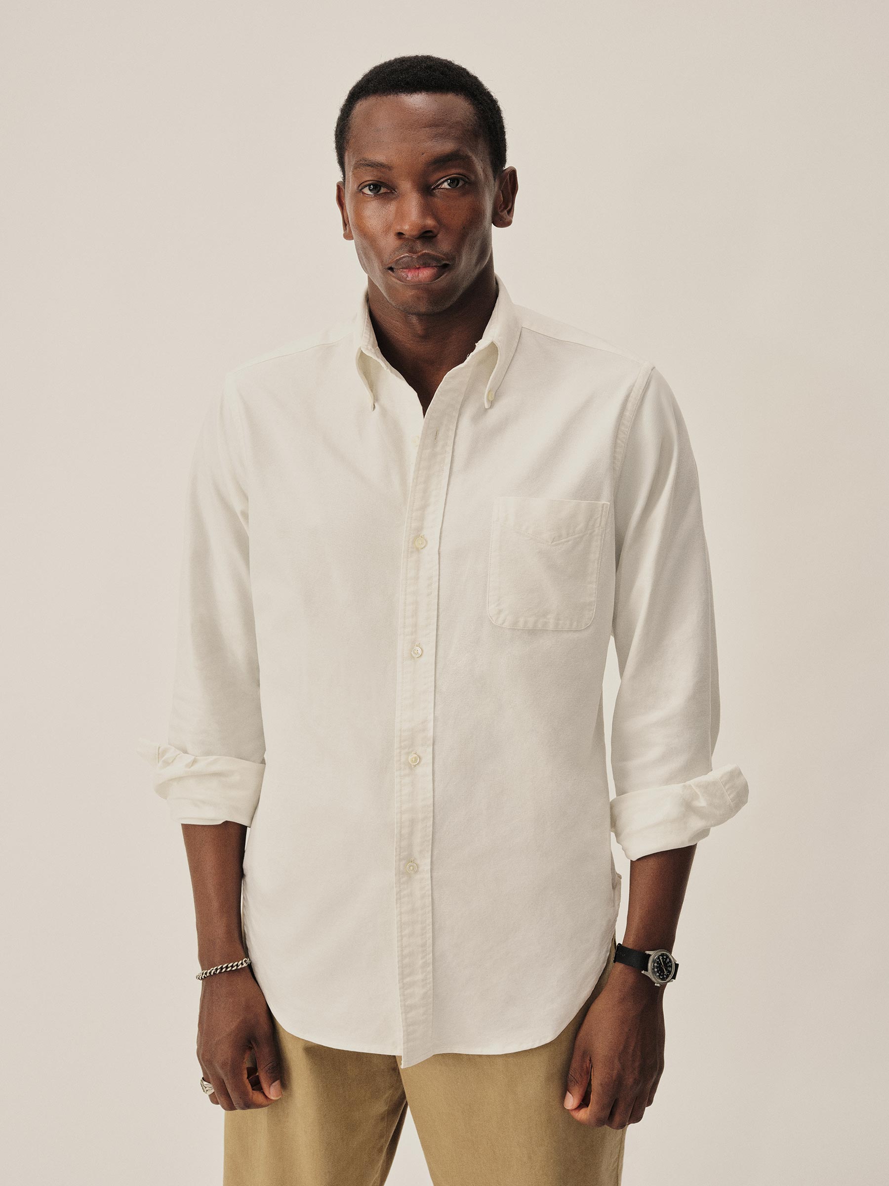 The Big Oxford is a subtle nod to vintage Ivy League tailoring with a gently oversized fit — referencing the proportions of archival American Oxfords. Built from 100% cotton in a 175 GSM heavyweight Oxford weave, using fine combed yarn in the warp and durable carded yarn in the weft. Finished with slightly thicker troca shell buttons.