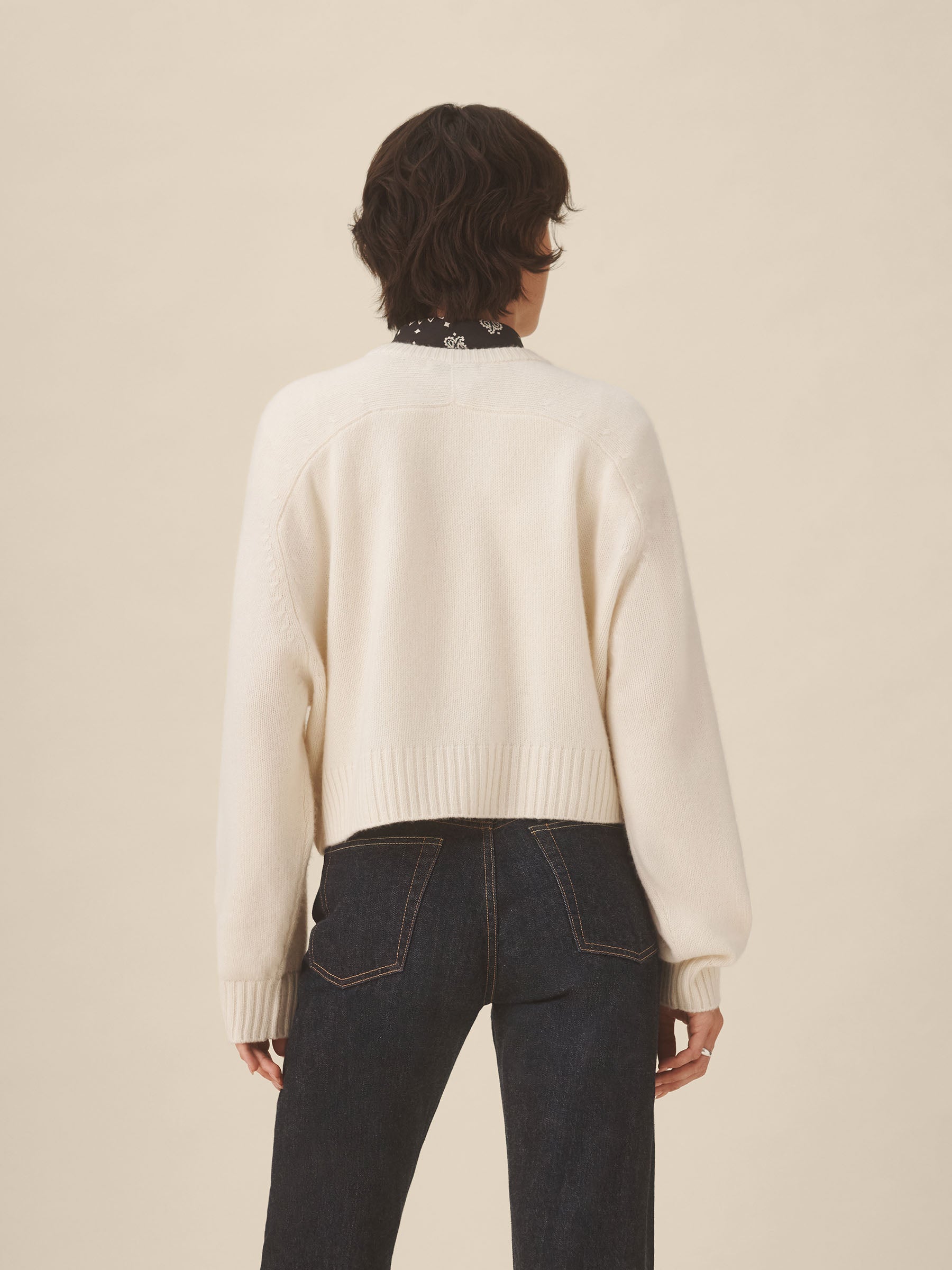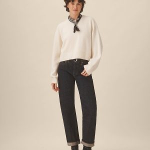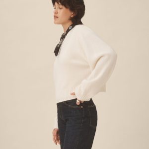 A cozy crewneck crafted from 100% cashmere in a soft jersey stitch. Designed with a boxy, oversized silhouette and saddle-shaped armholes, and finished with ribbed trims at the neckline, cuffs, and hem.