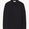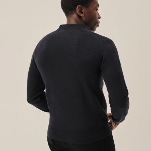 Slim fit long sleeve sweater polo in a 16 gauge jersey knit from yarn-dyed long staple cashmere. Details include a three-button placket with shell buttons and ribbing at the cuffs and hem. Constructed with hand-linked seams for durability.