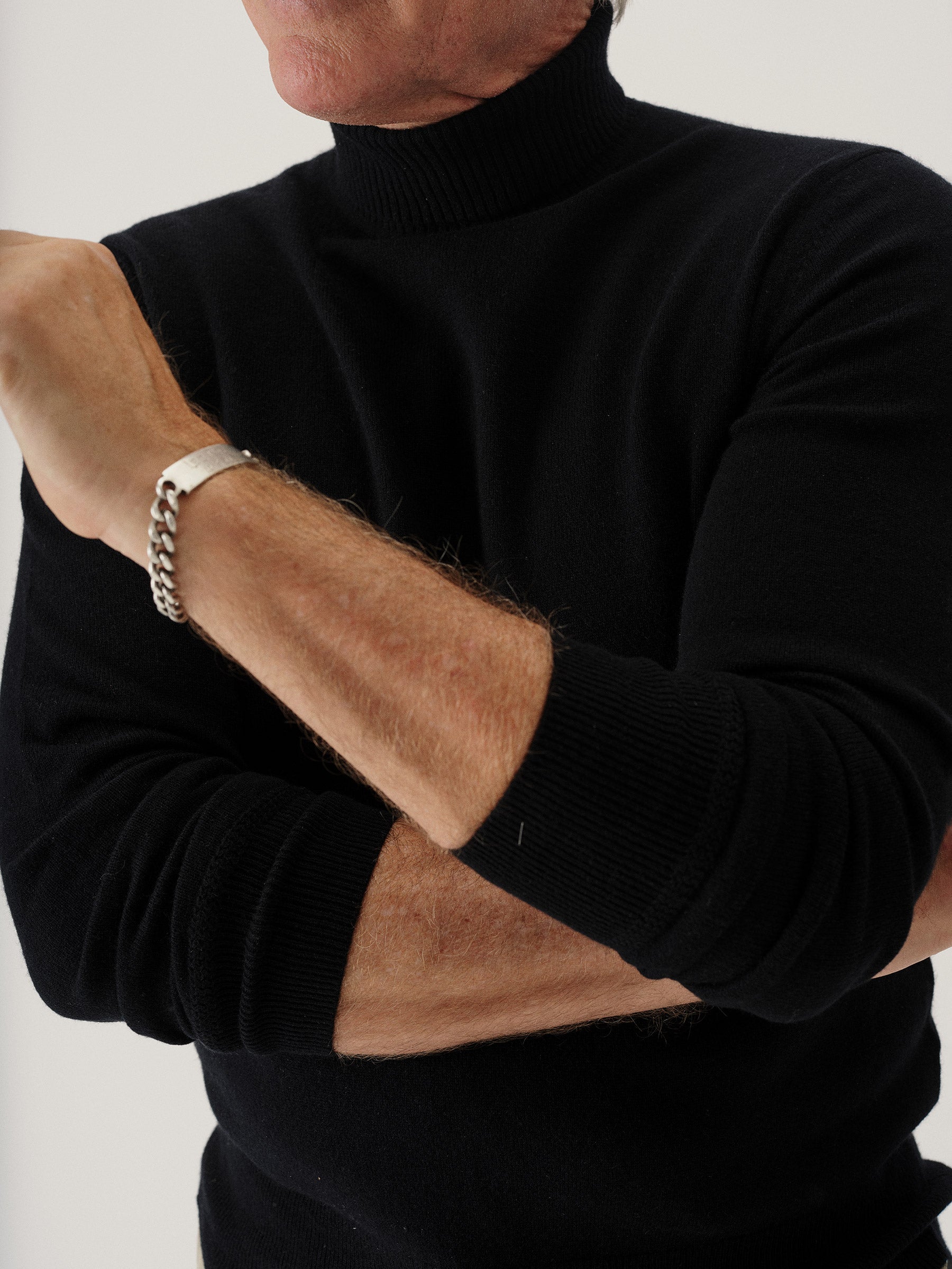 Classic turtleneck cut from our proprietary year-round featherweight cashmere. Fine-gauge and super soft. Ideal as a base-layer, or worn over a tee. Details include features subtle vintage racking, and tubular stitch details at the neck, cuffs, and hem.