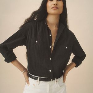 Relaxed long sleeve boatneck tee inspired by the classic French breton shirts. Cut from sturdy, compact 350 GSM cotton. Details include a taped boatneck neckline and side slits at the hem. Constructed with flatlock stitching throughout and double needle coverstitching at the hem. Garment washed for a lived-in feel.