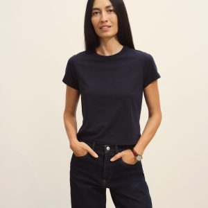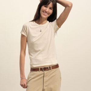 Slim fit crewneck tee cut from a supersoft 130 GSM blend of bamboo, cotton, and wool. Features a straight hem, a self bound neck, and raised armholes that hug the contours of the shoulders. Garment washed for a lived-in feel.