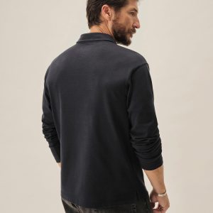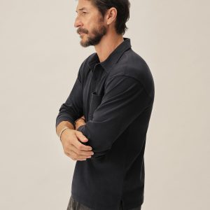 A popover shirt made from a midweight compact cotton jersey with a smooth, uniform texture and cool hand. It features a traditional shirt collar with a four-button half placket and single chest pocket. Ribbed sleeve cuffs.