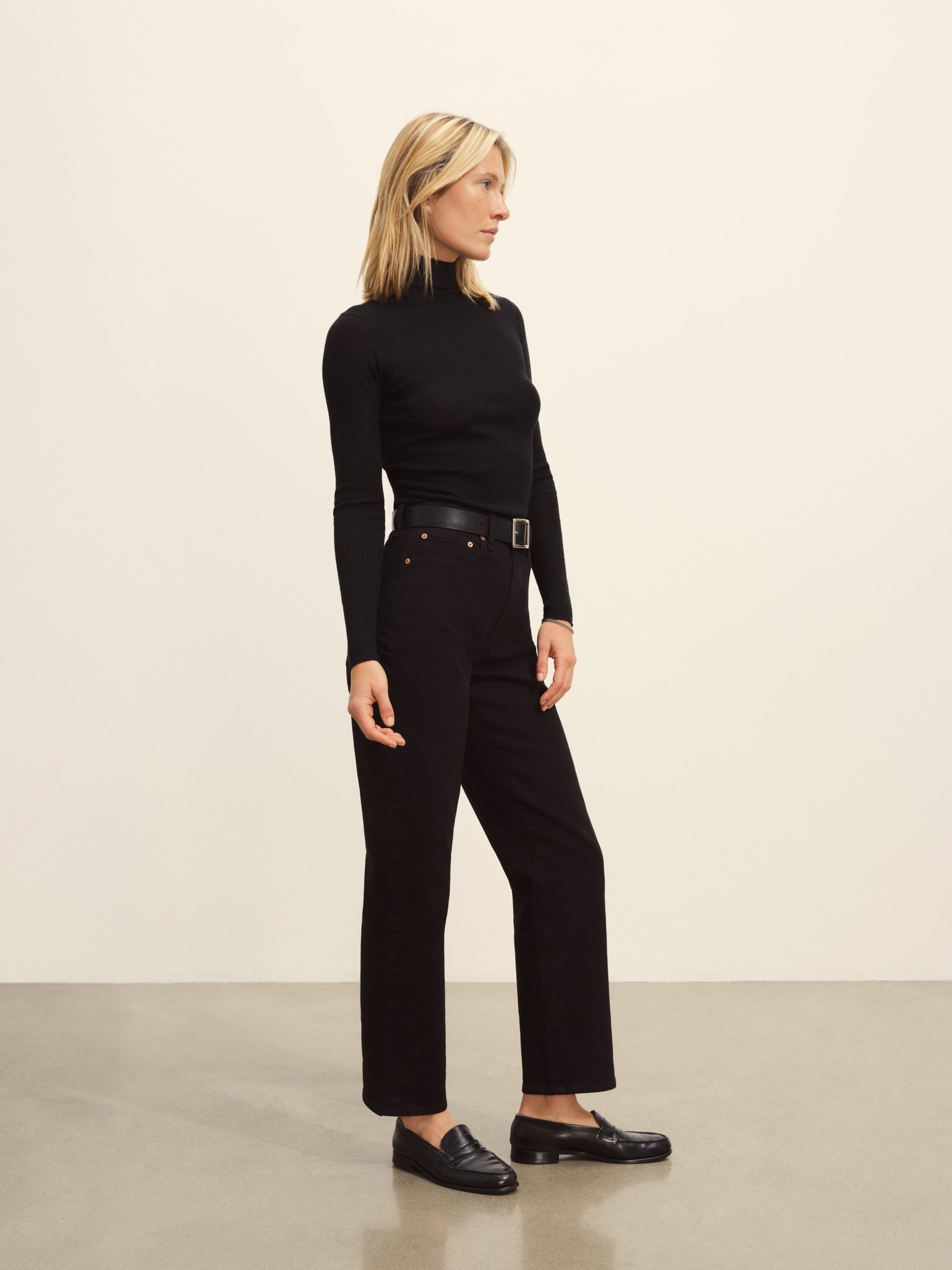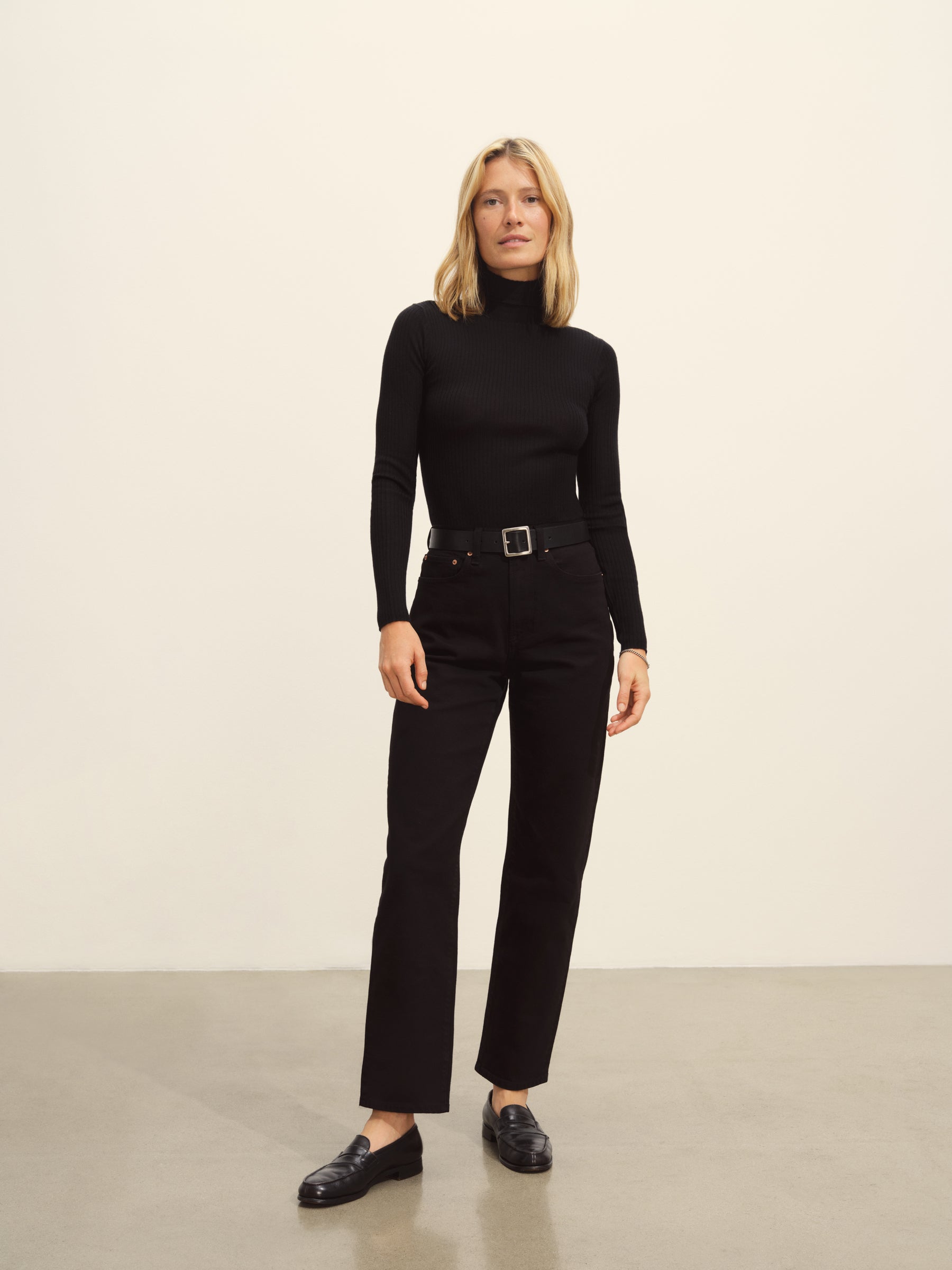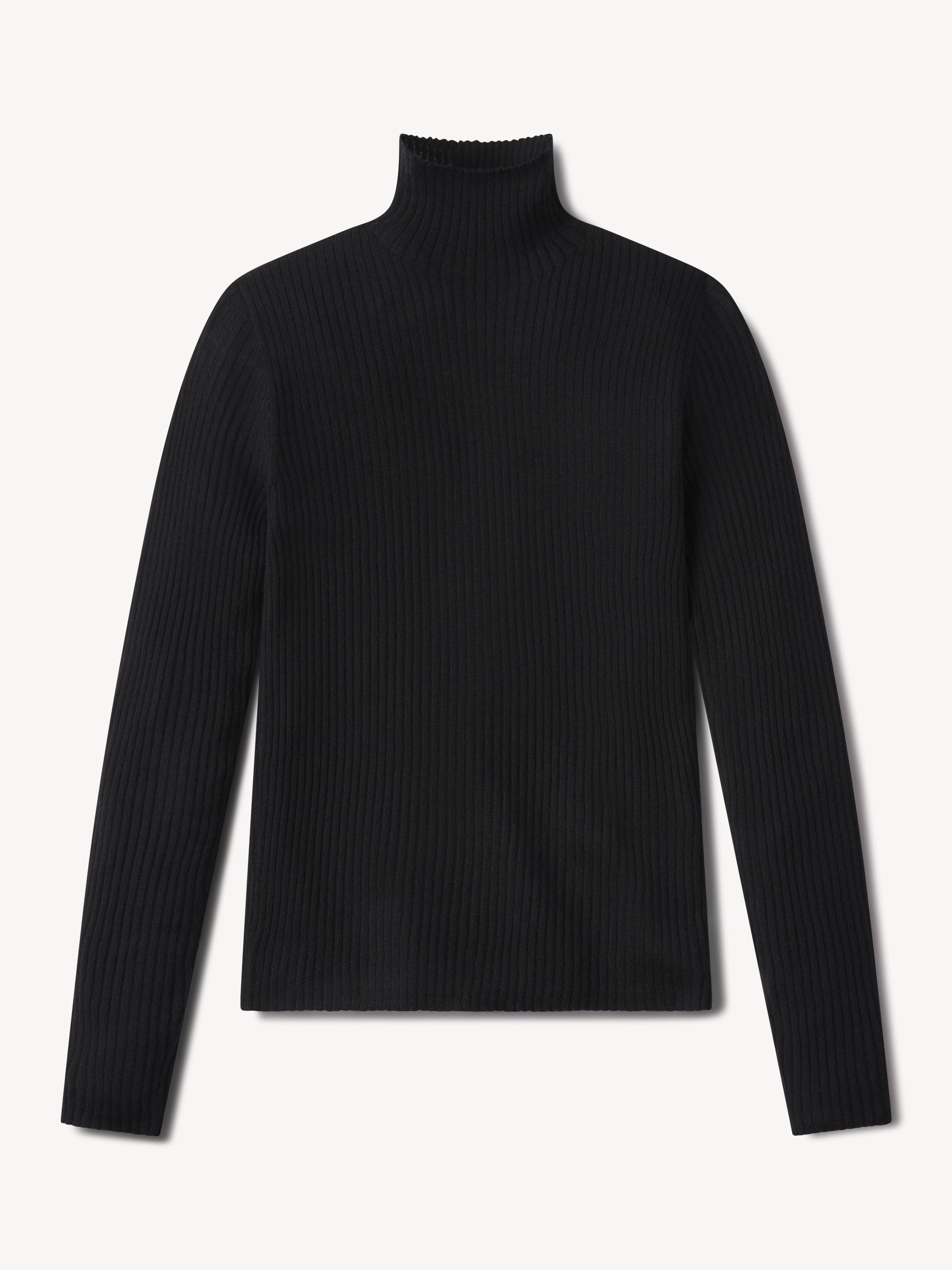 Slim fit turtleneck sweater in a 24″” length, elevated in a 14 gauge variegated rib knit from a blend of merino wool, silk, and cashmere. Luxe, easy, and ideal for layering. Constructed with self-starting hem and sleeve trim and fashioning at the neckline and back shoulder for durability.