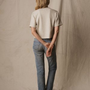 Cut from a heavyweight 310 GSM cotton, this slightly oversized, boxy crewneck tee has a straight hemline that hits right at your natural waist. Double-washed for a soft, smooth texture and consistent fit.