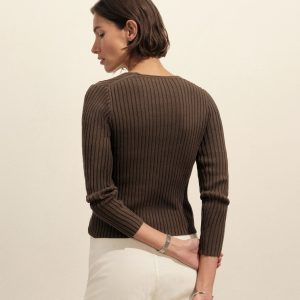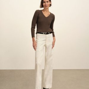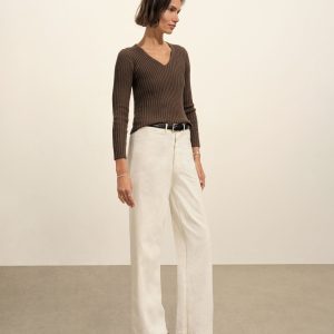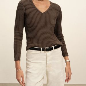 Fluted Rib V-Neck Long Sleeve