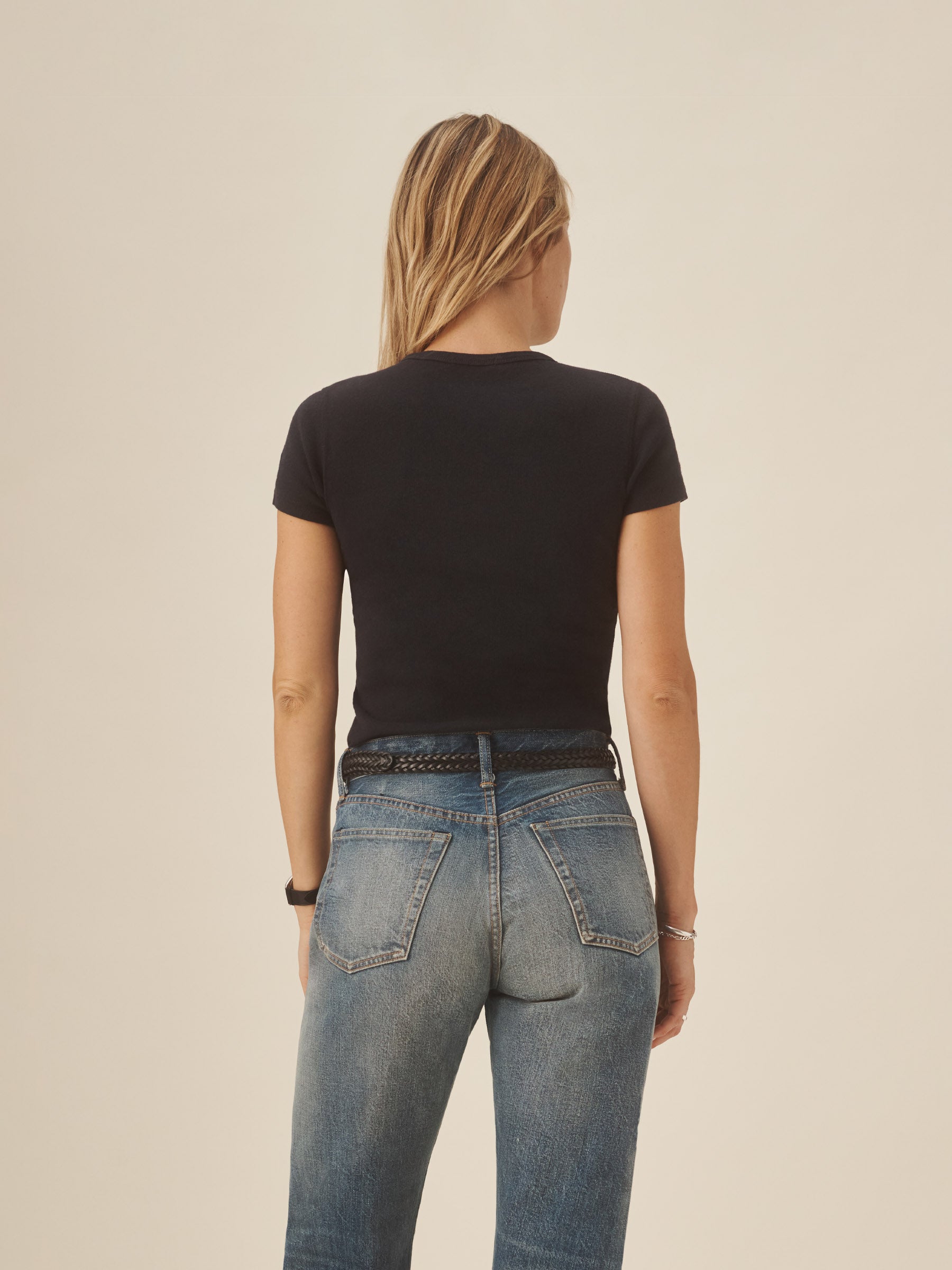 Our take on the classic baby tee, crafted from a superfine blend of new and recycled cotton with a subtle, textured rib. Garment washed for a lived-in look and feel.