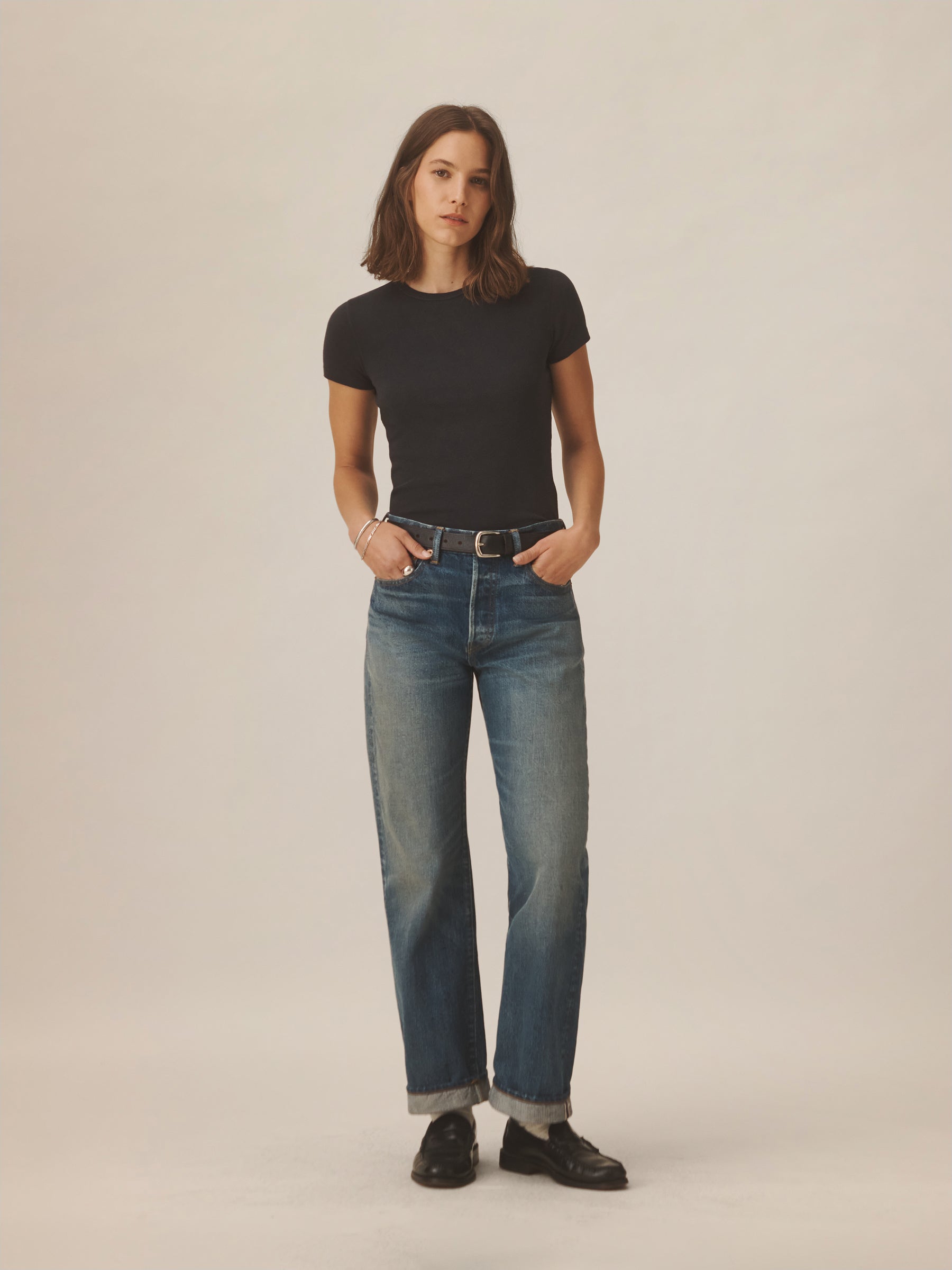Our take on the classic baby tee, crafted from a superfine blend of new and recycled cotton with a subtle, textured rib. Garment washed for a lived-in look and feel.