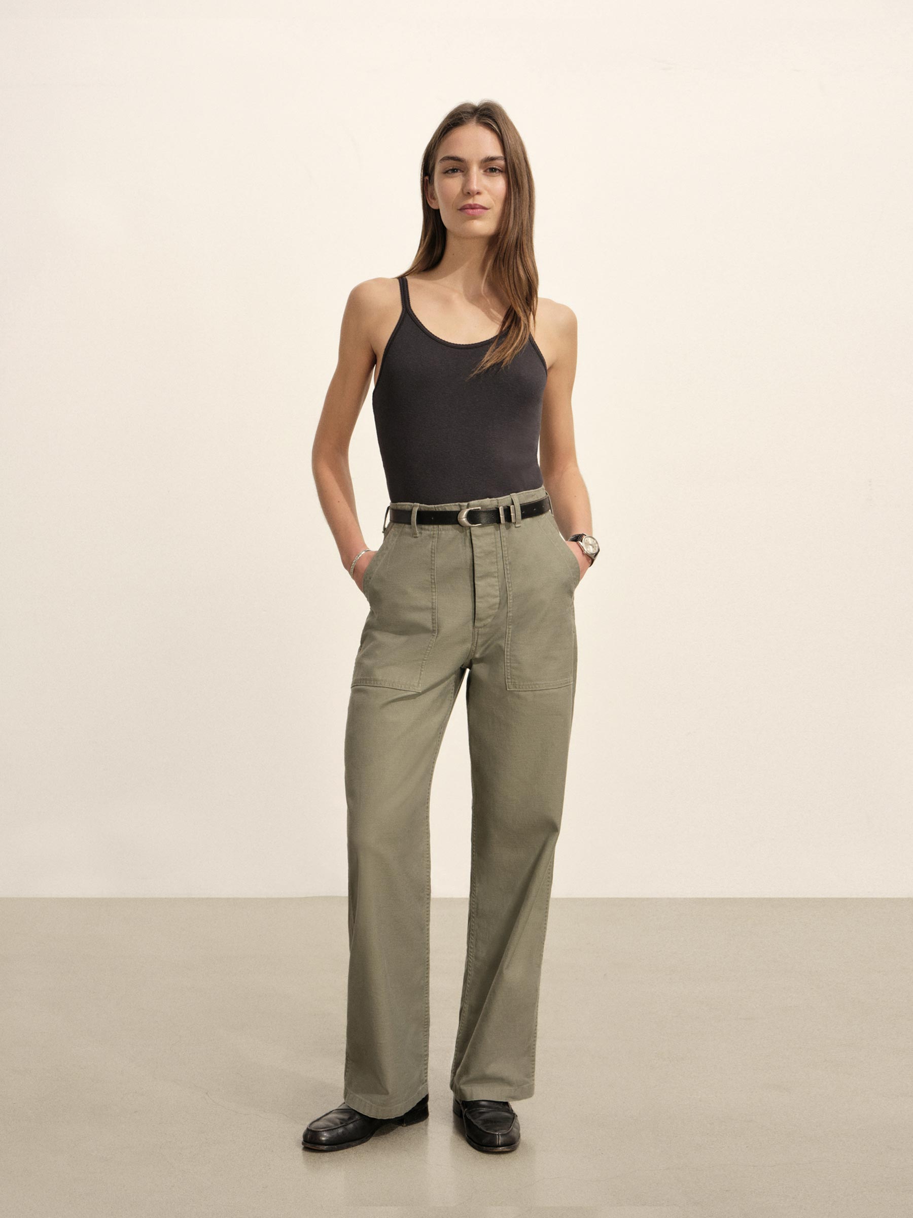 Slim-fit, vintage-inspired scoop tank made from a blend of 60% recycled cotton and 40% cotton. Featuring a combo of jersey fabric and scallop stitch details at the armholes and neckline, it also includes baby snaps for the bra holder.