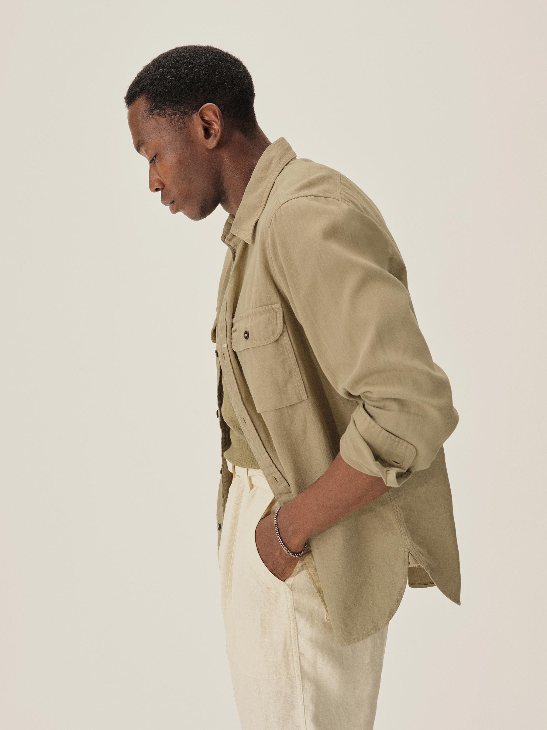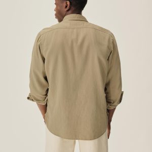 Born from the hardworking spirit of 1940s work shirts, the Soft Pack features a “cigarette pocket” at the chest and a narrow under-placket. Cut from a midweight, garment-dyed cotton/hemp HBT, and finished with a sun-fade effect, this shirt carries the weight of time.