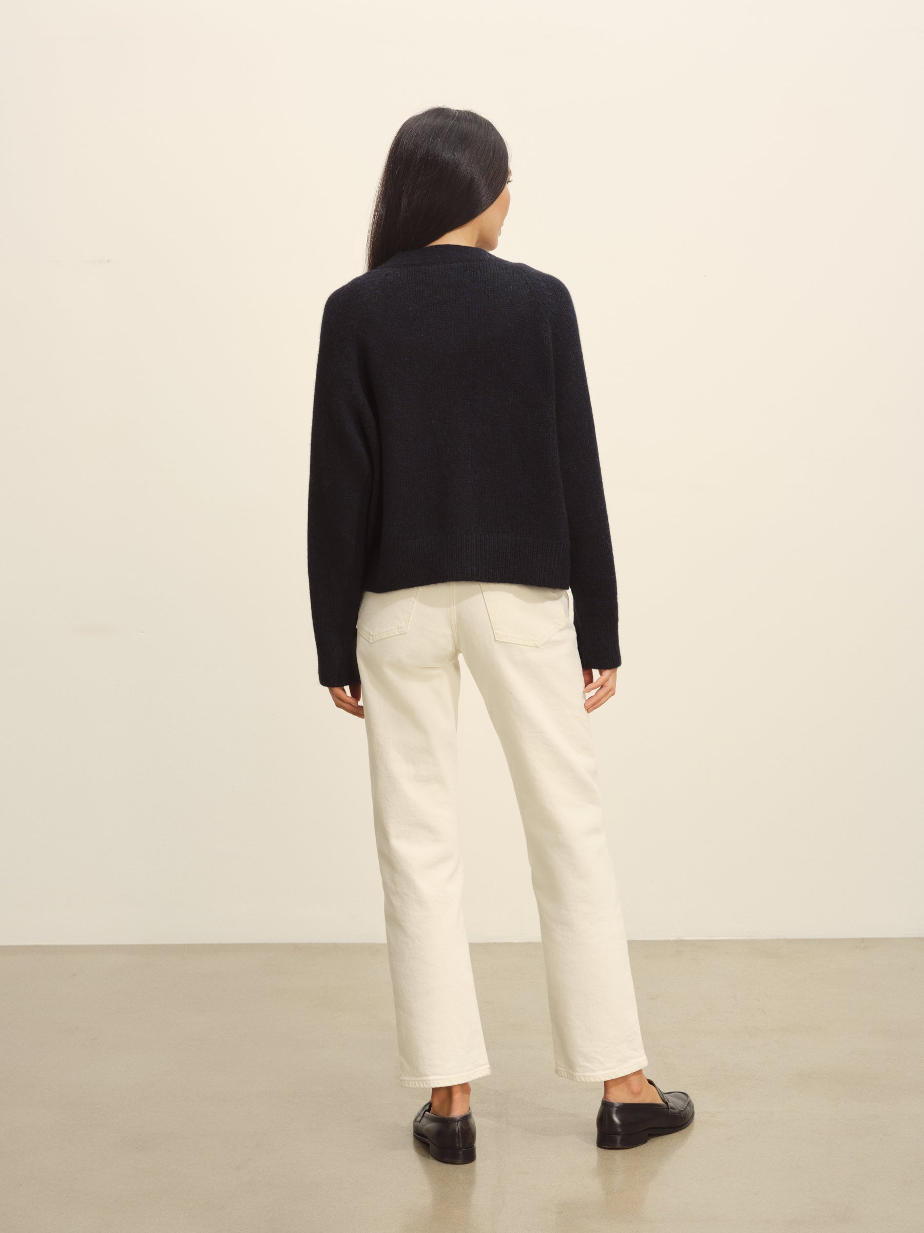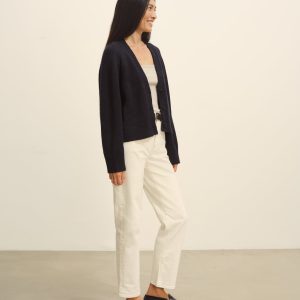 Crafted from a 5-gauge blend of Peruvian alpaca and merino wool, this cardigan has a soft finish and a substantial feel that’s prime for cool-weather outfitting. The boxy, cropped fit is complemented by a classic V-front, a three-button placket, and ribbing at the cuffs and hem.