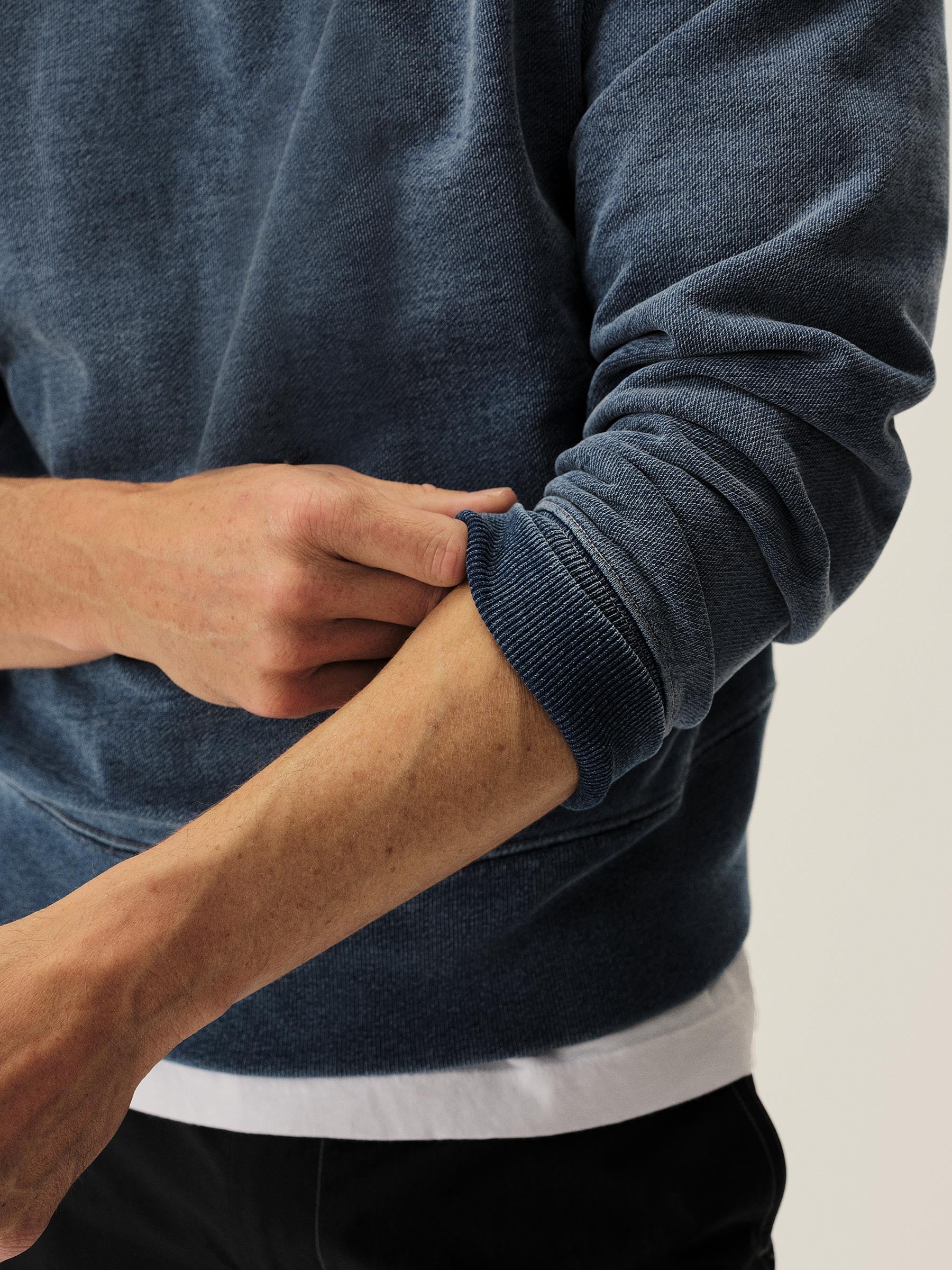 Indigo-Dipped Loopback Double V Crew Sweatshirt