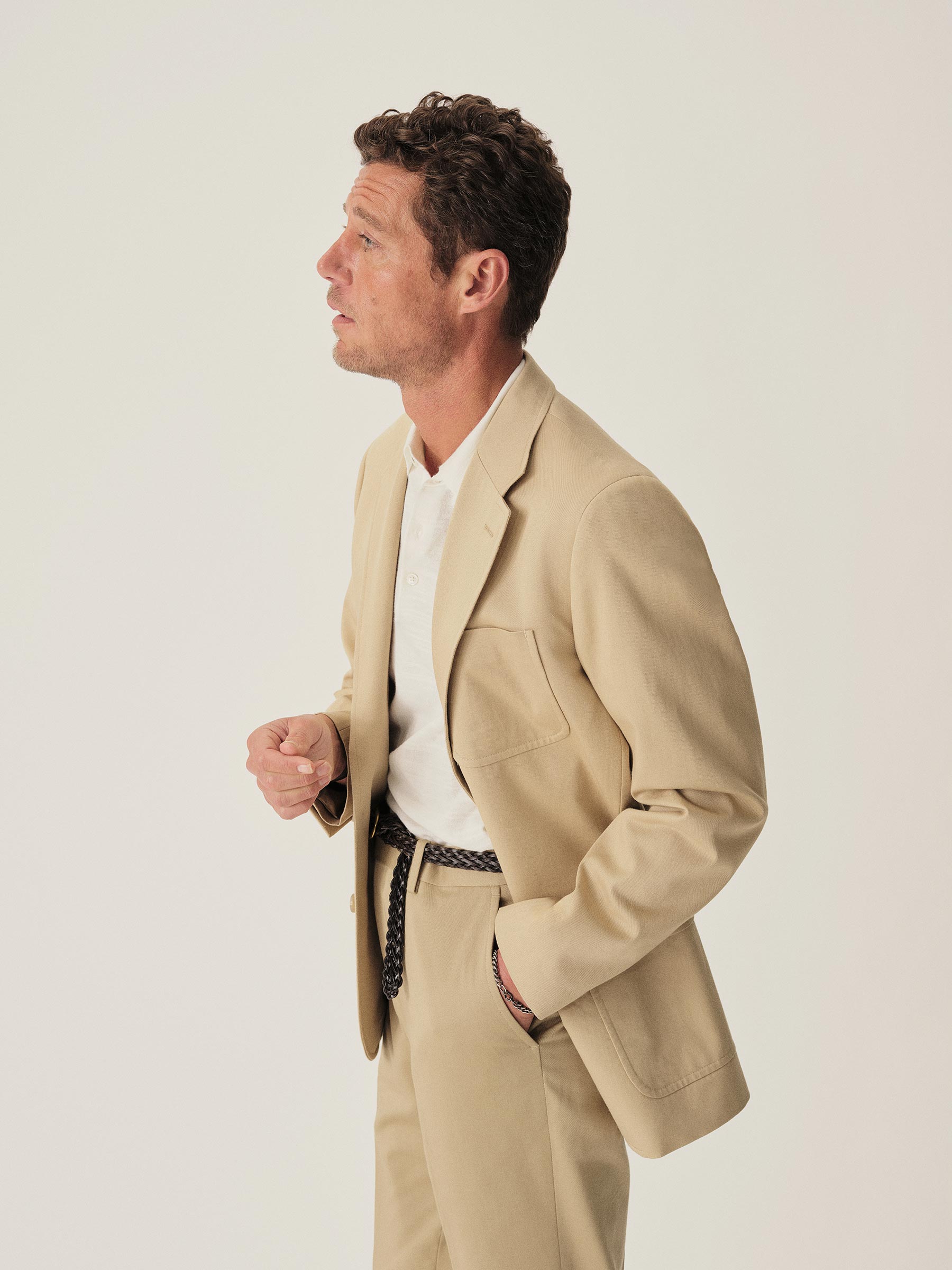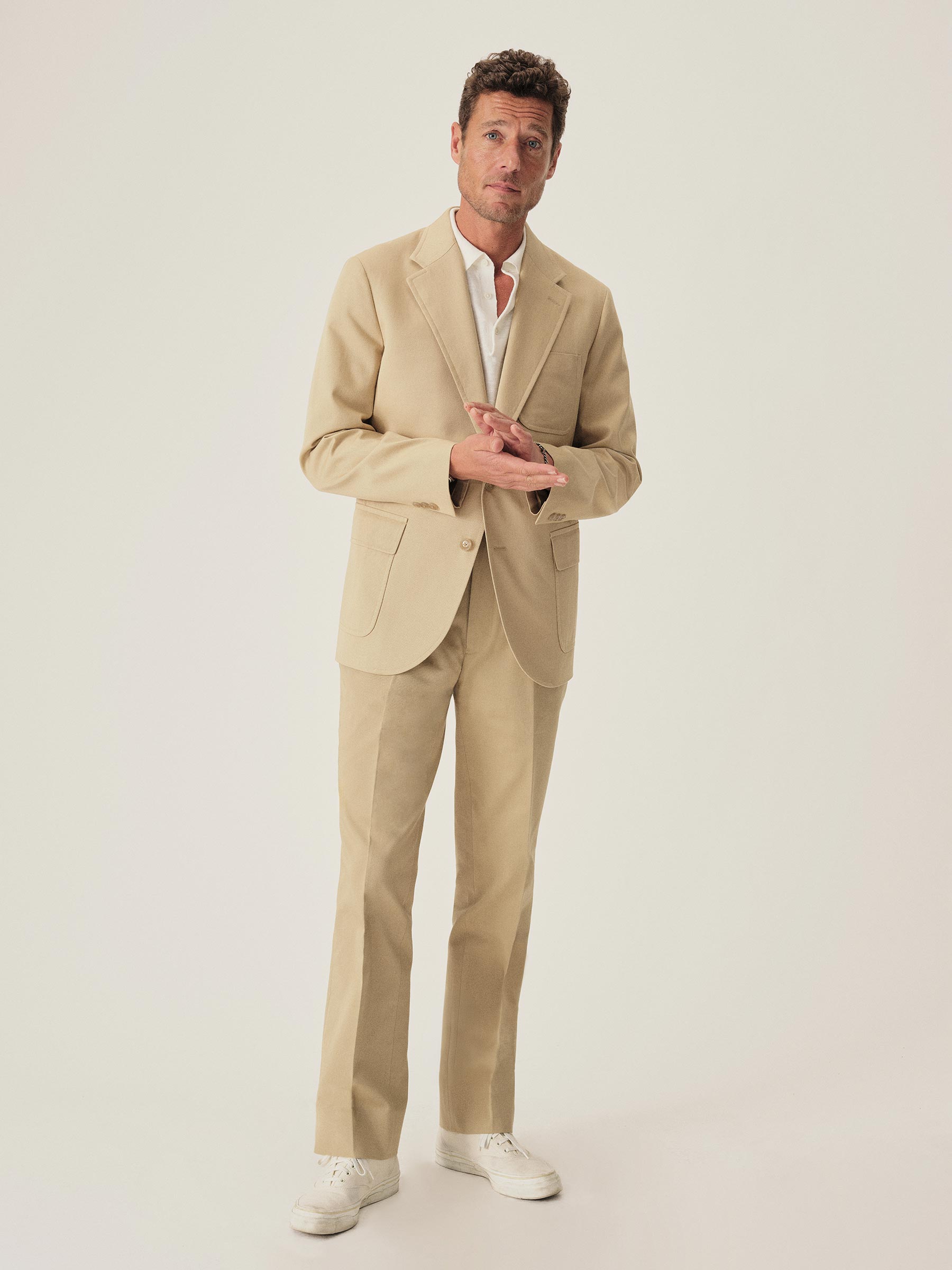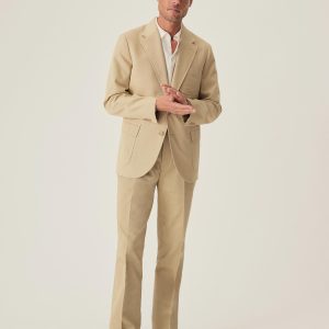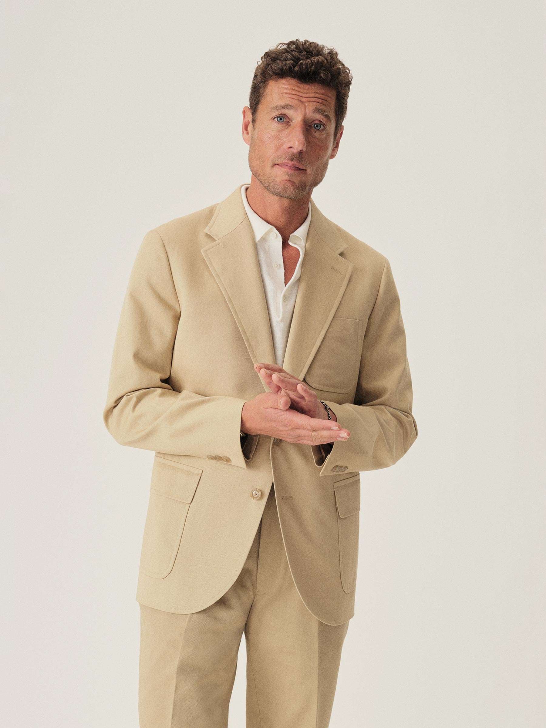 Tailored 3-roll-2 button blazer, Bemberg-lined with full canvas construction. Details include three patch pockets, three internal welt pockets, notch lapel, and a hook center vent.