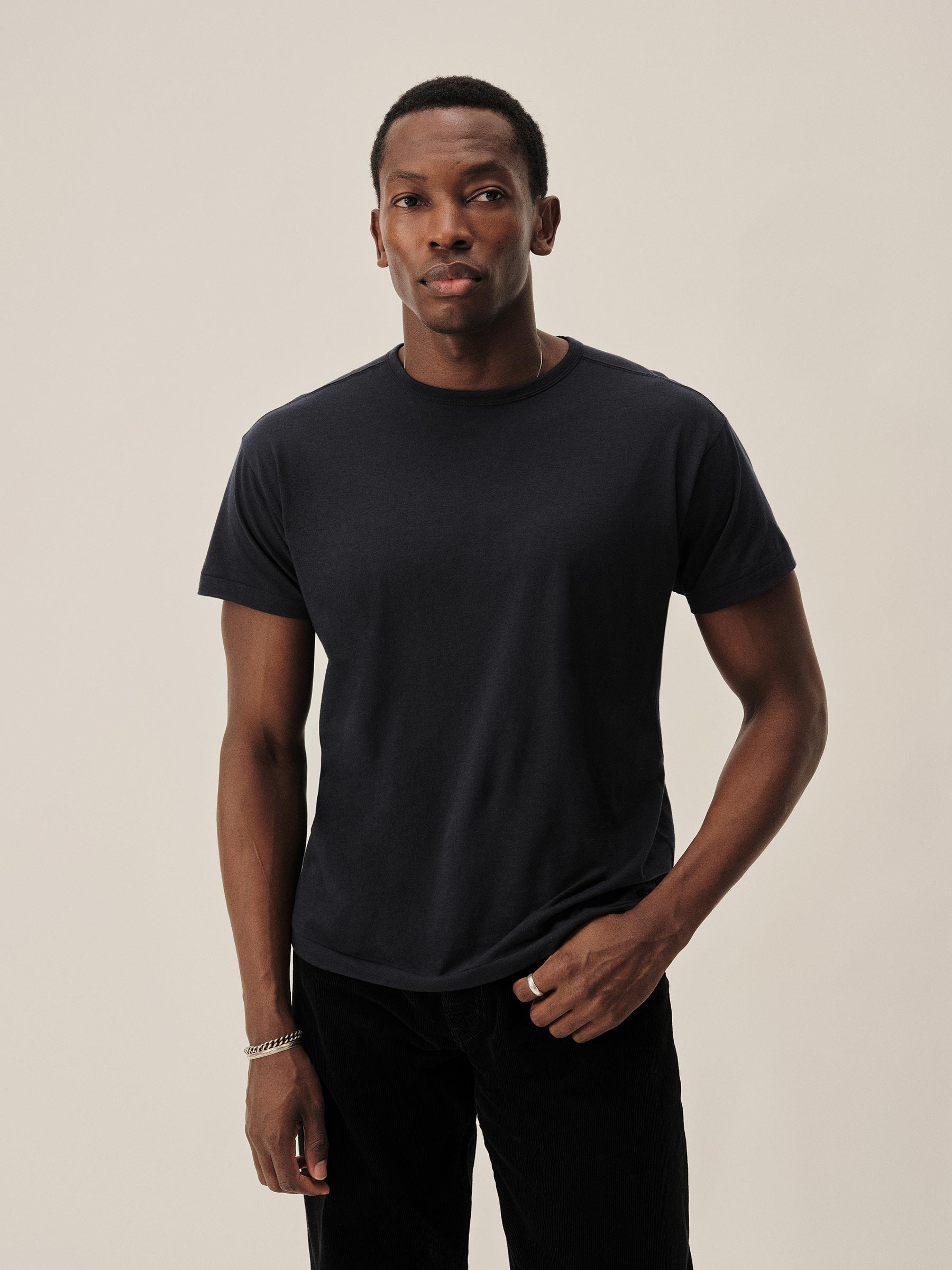 A classic tee knit in Japan from a blend of cotton and cashmere — delivering a refined, ultra-lightweight feel at just 100 GSM. Piece-dyed for rich color. Designed with a slightly longer in length and fuller in the chest for a relaxed, easy fit.