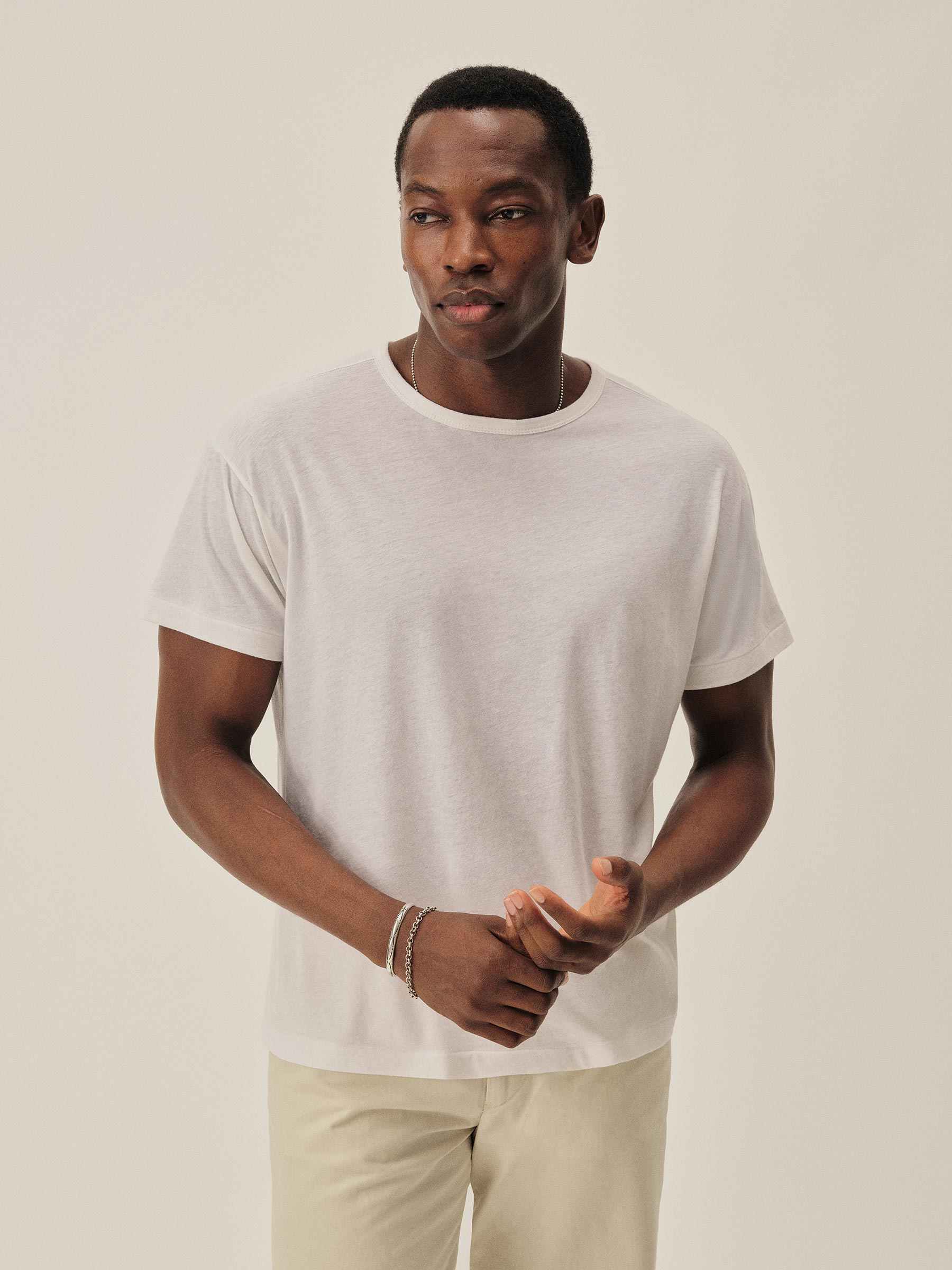 A classic tee knit in Japan from a blend of cotton and cashmere — delivering a refined, ultra-lightweight feel at just 100 GSM. Piece-dyed for rich color. Designed with a slightly longer in length and fuller in the chest for a relaxed, easy fit.