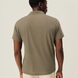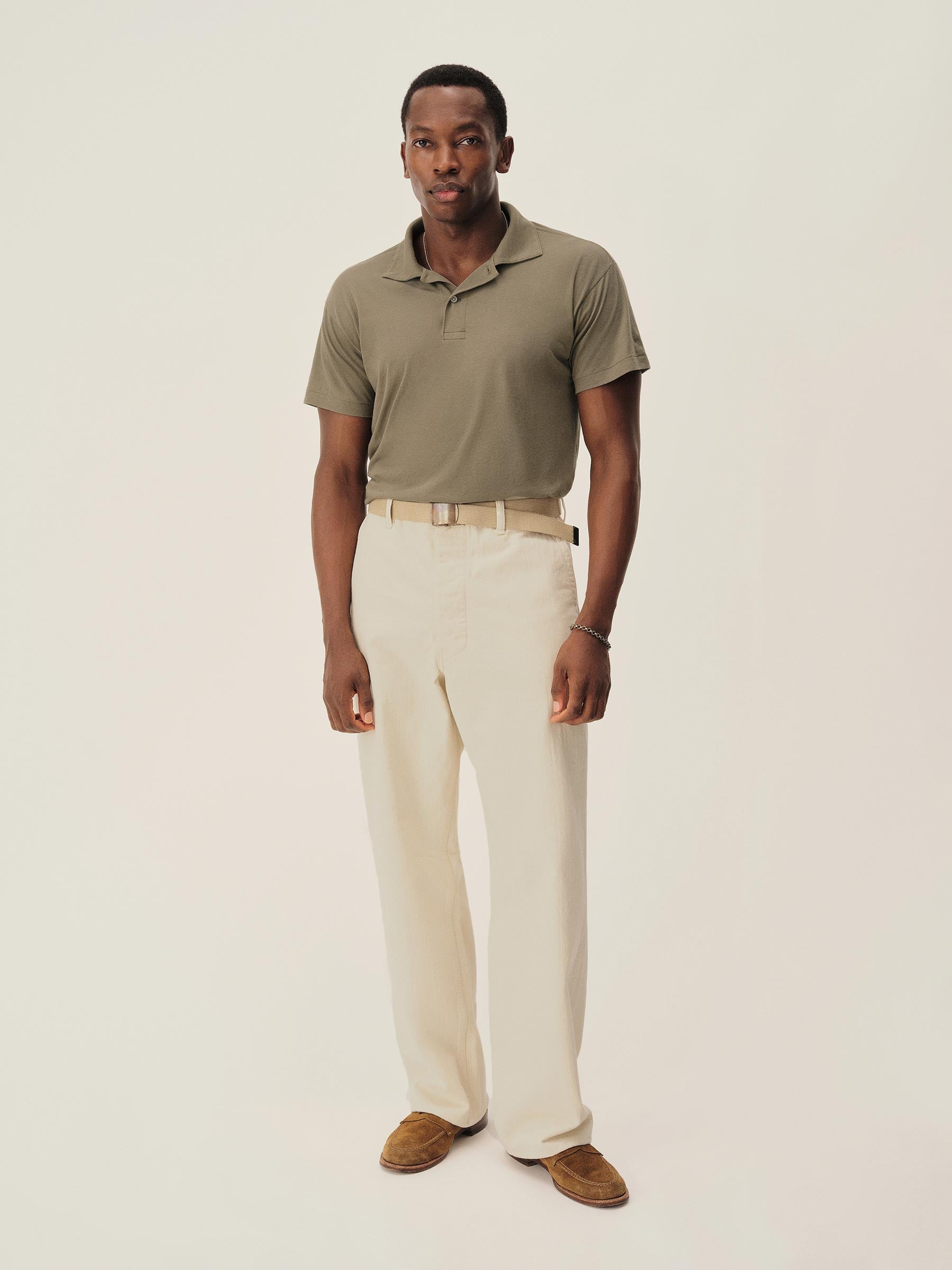 Classic fit polo crafted from a custom, superfine 56 singles blended cotton-linen yarn, spun and knit exclusively in Japan. This fabric is designed to combine the smoothness of a premium yarn with the subtle texture of something more rugged. The result is a polo that’s smooth, cool, and light as air, with a subtle silky hand feel. Finished with blind hems at the sleeves and bottom, a two-button mitered placket, overlocked seams, seam tape binding, and neck binding for reinforcement.