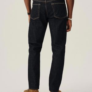 A classic 5-pocket jean in our Maverick Slim fit: Mid-rise with a clean, narrow fit through the thigh and leg. Button fly. Inspired by our favorite vintage jeans, this 14 oz denim from Japan-based Kaihara mills has a hint of stretch and an organic texture that develops more character with every wear. Garment rinsed for a lived-in feel. Details include copper rivets and a metal tack button fly.
