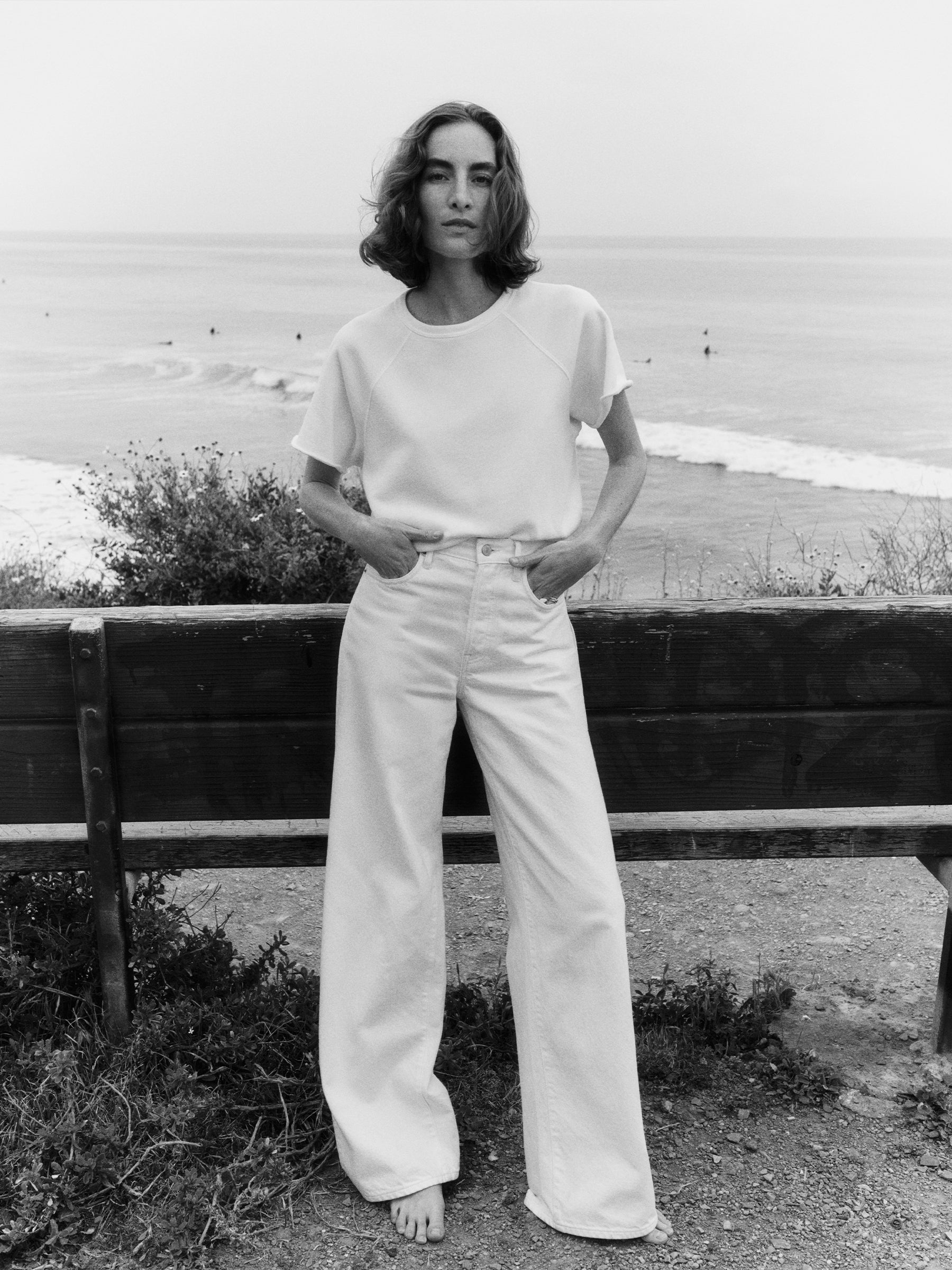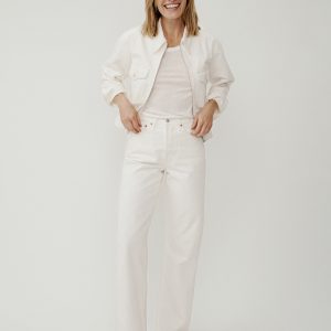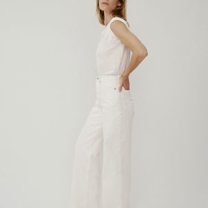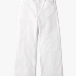 Made from a midweight denim, these are classic five pocket jeans with all the right details – copper rivets, metal tack button waistband, and a button fly. Cut in a generous 11.5″ high rise and wide leg fit with a 32″ inseam, these jeans have been washed for a lived in feel.