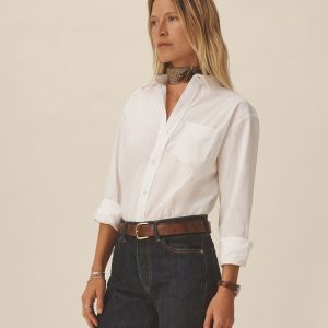Relaxed button-down shirt in 3.7 oz. cotton plainweave. 29.5” length hits just below the hip. Details include a back yoke with box pleat, a single spade pocket, and pleated cuffs. Inspired by mid-century men’s shirting, this piece can be worn on its own, layered over a tee, or paired with our Rider Pant. Garment washed with softener for a lived-in feel.