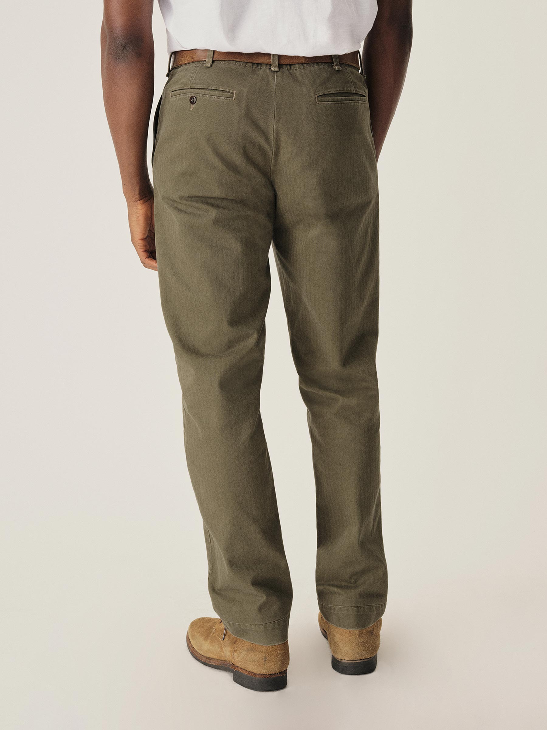 The classic officer’s pant in our Maverick Slim Fit: mid-rise, slim through the thighs with a taper below the knee. Cut from a midweight cotton HBT that’s been washed to achieve the same look and feel of vintage service uniforms. Featuring a one-piece “Hollywood” waistband, slash front pockets, welted back pockets, and a welted coin pocket. Finished with real corozo buttons. Garment washed for a lived-in feel. Button fly.