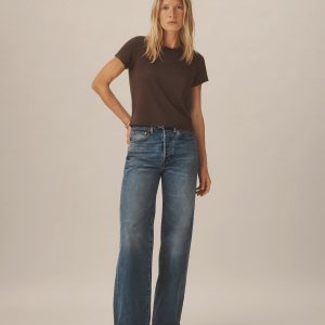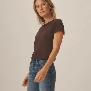 Boxy short sleeve crewneck tee with a straight hem. Cut from 120 GSM Supima cotton. Constructed with rib neck binding and double-needle cover-stitching at the hem. Garment washed for a lived-in feel.