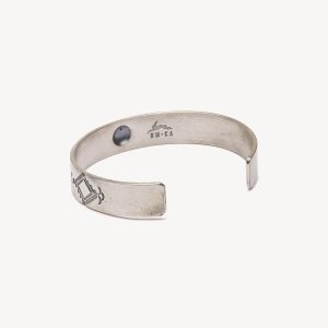 Hand-formed in Texas from solid sterling silver, this cuff draws on early 20th-century Southwestern design. Clean edges and subtle stamped markings bring out the character of the ½-inch band. Finished with a Red Rabbit x Buck Mason co-branded stamp.
