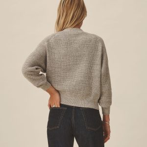 A relaxed cardigan made from marled cotton yarn and knit in a classic waffle stitch. Designed to layer over tees, it’s built with a functional front placket with urea buttons, patch pockets, and a clean V-neckline.