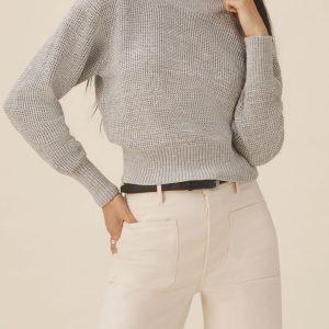 1960s inspired crewneck sweater with an easy, slim fit. Crafted from 7-gauge waffle knit yarn-dyed cotton with a light slub texture, featuring fashioning at the neck and drop-back shoulders as a nod to mid-century.