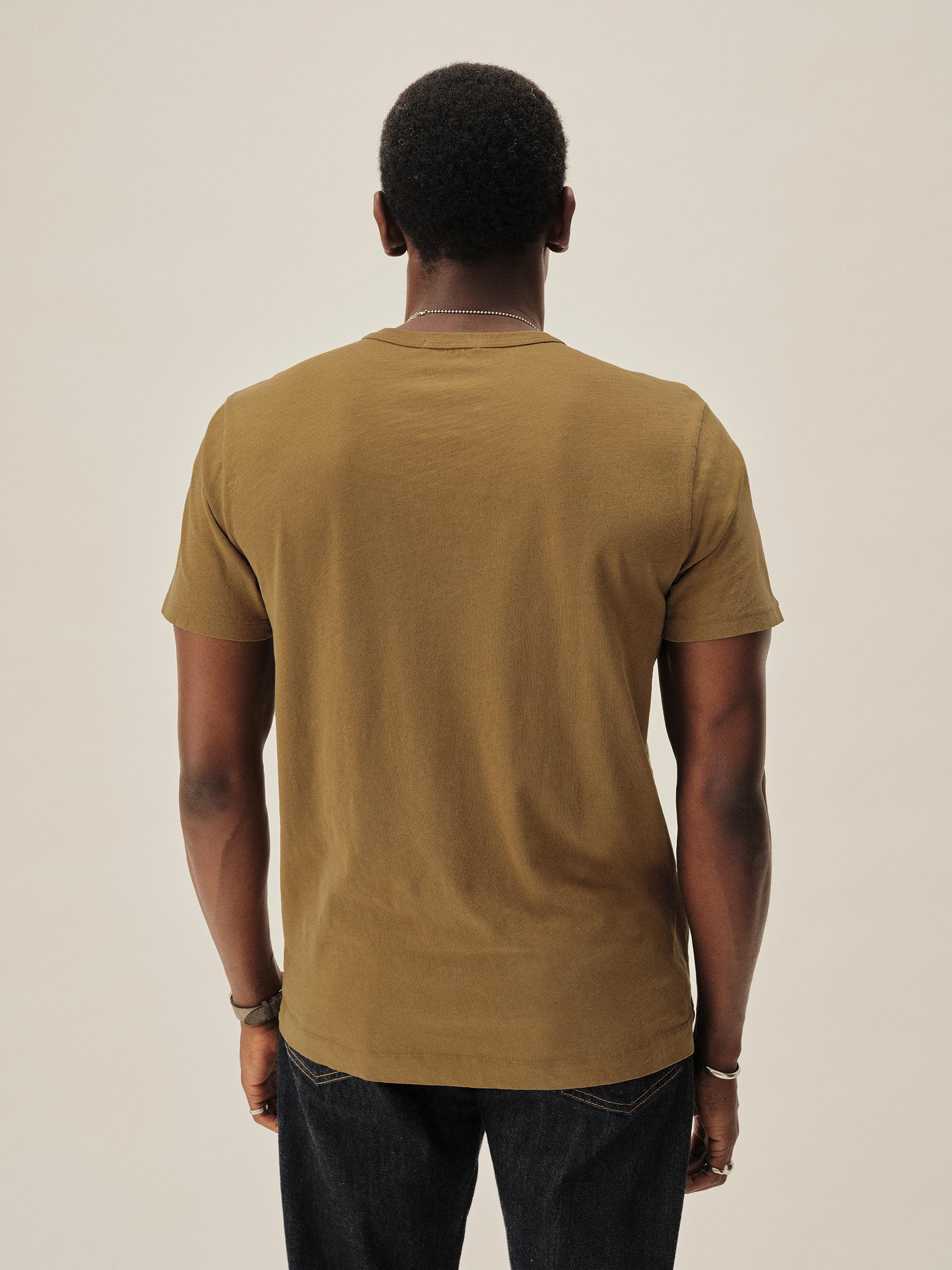 Classic fit short sleeve crewneck tee with a straight hem. Cut from USA-grown 145 GSM cotton jersey with a light slub texture and sewn at BM Knitting Mills in Mohnton, PA. Garment washed with enzymes and softener for a lived-in feel.