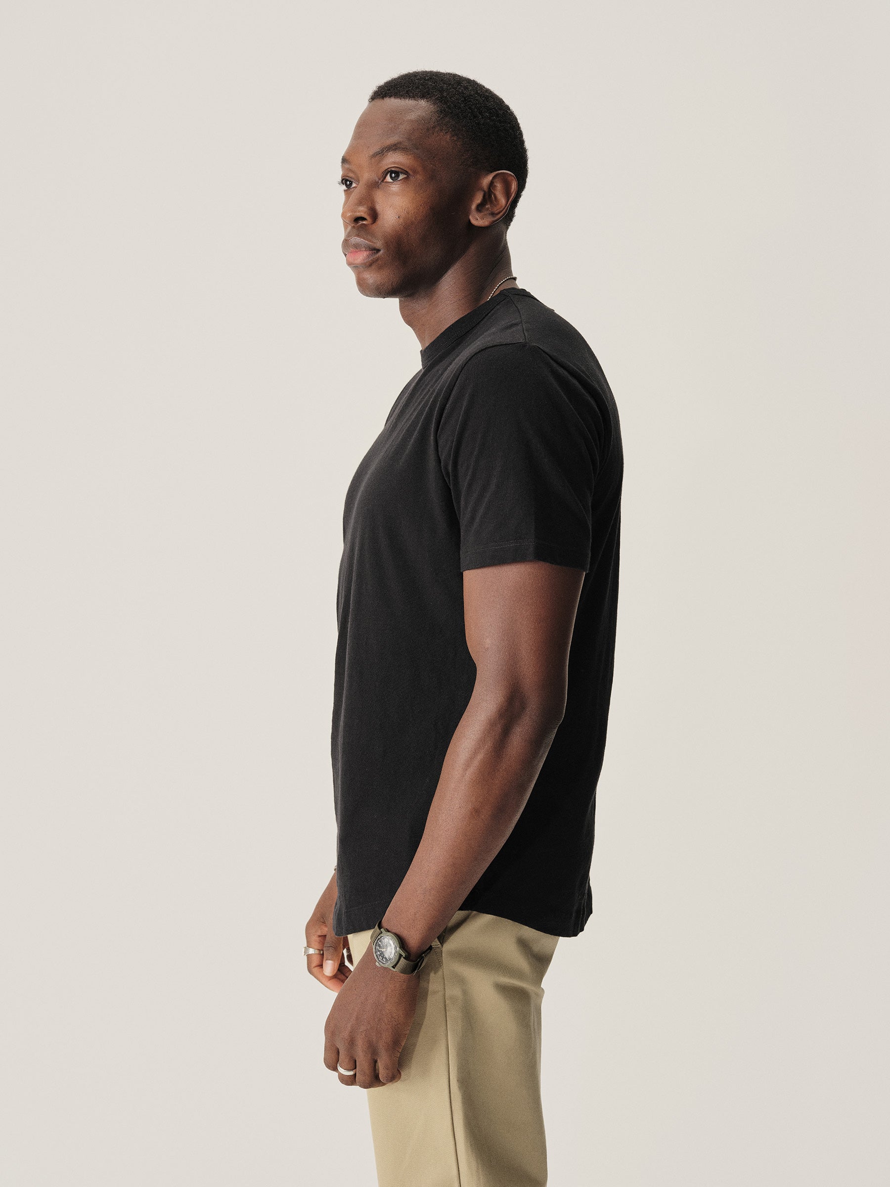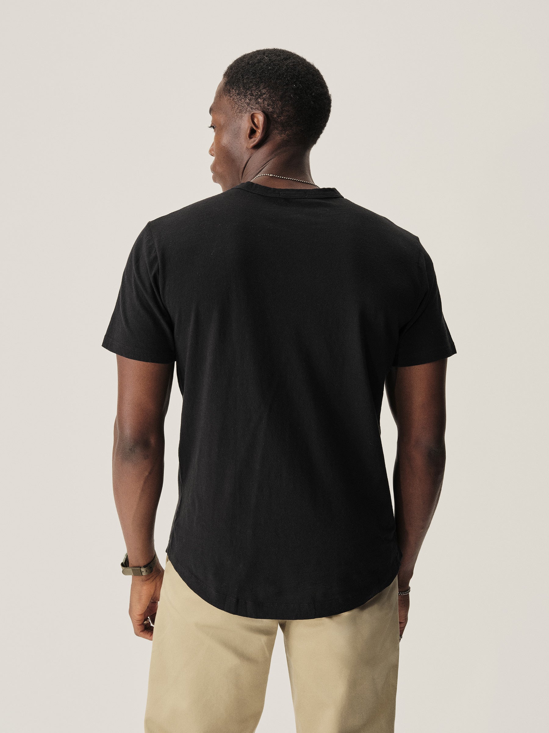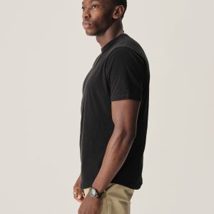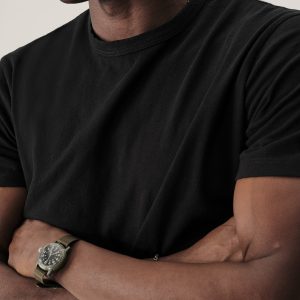 Classic fit short sleeve crewneck tee with our signature curved hem, cut from USA grown 145 GSM cotton with a light slub texture and sewn at BM Knitting Mills in Mohnton, PA. Constructed with self-neck binding and a flat stitch finish for comfort. Garment washed with enzymes and softener for a lived-in feel.