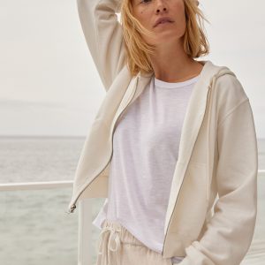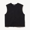 Relaxed muscle tank with a straight hem, cut from 125 GSM cotton with light slub texture. Modeled on a vintage men’s tee with the sleeves cut off. Knit in Los Angeles and washed for a lived-in feel.
