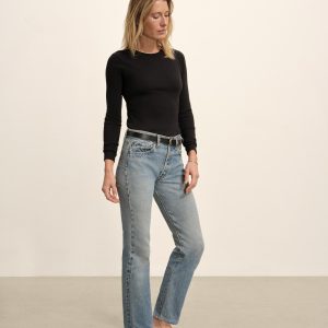 Slim fit ribbed long sleeve tee cut from 295 GSM stretch cotton that holds its shape. 2×2 rib structure—two rows of rib stitch, two rows of jersey stitch—is offset by contrast 1×1 rib at the neck. Constructed with coverstitching throughout and flatlock stitching at the side seams. Garment washed for a lived-in feel.