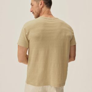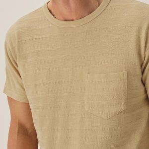 Classic fit short sleeve crewneck tee with a straight hem and patch chest pocket. Cut from a midweight cotton with tonal jacquard patterning. Garment washed for a lived-in feel.