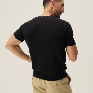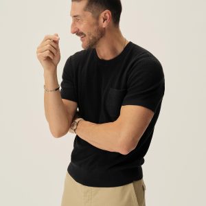 A classic fit tee in a fine knit drop-needle rib construction. Made from 12 gauge yarn-dyed hemp/cotton blend that wicks moisture and breathes easily. Chest pocket with ribbed opening. Finished with a 1×1 rib at collar, cuffs and waistband. A versatile summer layer inspired by vintage rib tees.